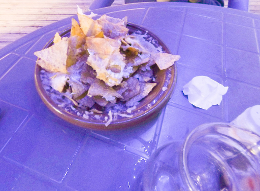 Le plat arrive et la ; Ho catastrophe ; on me sert des chips mexicain ( type Tortilla Chips ) avec du gruyère fondu dessus et un des à coudre de guacamole !!! j’ai juste halluciné !!!