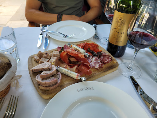 Adding to my wine education brought me to Bordeaux and dropped me, among other places, at Chateau Lynch-Bages for a spectacular tour of their new production facilities, a tasting and lots of historical details. Turns out that the current owners of the winery and vineyards surrounding it unknowingly also received the "town" immediately adjacent to the winery with their acquisition. Upon discovery, the family renovated or rebuilt all of the structures in the tiny town just steps from the winery to complement the business and provide housing and services for the employees who were willing to live within a two minute walk of their employer. Café Lavinal is THE restaurant in town. Make no mistake, this is not an afterthought to the wine operation. It is an upscale establishment brimming with the ambiance and atmosphere that befits the marriage of the region's passion for both wine and food. We took lunch al fresco on a warm, sunny afternoon under the shade of patio umbrellas. Ordering from the Lavinal lunch menu provided sophisticated three-course options that were as artfully prepared and presented as they were creative and satisfying. Not unexpectedly, ingredient quality reigns supreme and deft hands in the kitchen transformed them into delicacies that were worth sharing with everyone in our party, making sure our choices covered the widest range of flavors and textures possible. Service was impeccable and appropriately timely, keenly aware of our pace and responsive when we were ready to depart. I selected a very approachable white Bordeaux from the Chateau's second label and was reminded that it's not at all hard to pair food and wine in the region. Reservations are a must as it's literally the only restaurant in town. But it's worth planning. Definitely a...