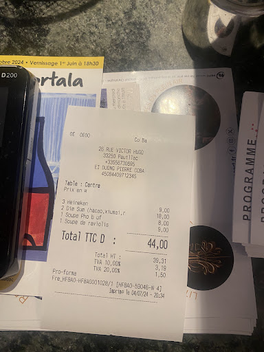 Read moreTucked away behind the main street of Pauillac, Co Ba is a hidden restaurant that absolutely deserves a visit. This cozy spot in the heart of Bordeaux’s wine region serves up incredible dishes that elevate the dining experience. I chose the flambéed scallops, and they were nothing short of excellent—perfectly cooked and bursting with flavor.