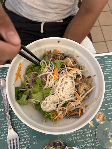 We stoped here for lunch during a chateau drive through the Médoc area. We had fresh summer rolls, fried pork spring rolls, chicken salad for starters. The summer rolls were good. The fried spring rolls were. Or as delicately crispy as I had hoped. The chicken salad was ok — the dressing tasted identical to the dipping sauce for the rolls. For entrees, we had seafood caldron, duck breast and a beef satay fried pork salad. I’d say all the entrees were ok. Nothing wrong with them but also no wow. The beef entree seemed to have same dressing as the dipping sauce again. The service was friendly. The restaurant is clean...