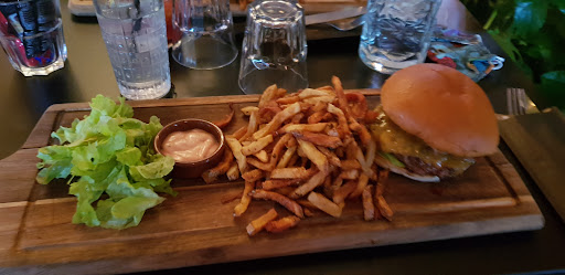 Restaurant tres sympathique bonne ambiance avec fond musical très appréciable (sauf quand la fanfare du village décide de jouer pas loin 😁) Ouvert tout récemment avec une équipe jeune et dynamique souriante et sympa La déco est originale on mange sur des grandes banquettes avec table en bois blanc du plus bel effet,des tonneaux avec tabourets, et il y aussi des tables chaises plus classique. Le système de commande est moderne et original un peu comme certain tacos on passe commmande au bar et on a un bipper qui nous préviens que votre commande est prête à venir chercher. Les plats sont très bon et copieux nous avons pris des salades: deux aux chèvre miel, une bacon avocat elles sont super copieuses et délicieuses pour le prix de 13€/14€ je trouve le prix raisonnable vu la qualité et la quantité👌 mon fils a pris un burger bacon maison servi avec des frites pour 14€ il a adoré🍔 je reviens sur les frites une tuerie elles on un assaisonnement délicieux peut-être que ca ne plaira pas à tous mais nous on a adoré (sauf a mon fils qui lui préfère les frites McDonald's donc loin d'être une référence😂😂😂) Nous avons pris une frite maison XL avec nos salades a 3 personnes cela nous a suffit le coût est de 5€ En déssert une petite crème brûlée tiède à point à 5€ et nous voilà repu. En résumé je conseille sans modération pour passer un moment sympa en famille ou entre amis Je pense que ce jeune restaurant va vite devenir une...
