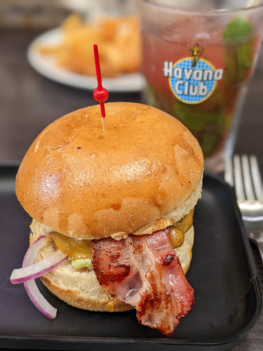 Sat down outside at a table which had food menus on, when we started to order food we were told we had to move to another table (next table but one), didn't question it but thought ok there must be some silly reason for this but alright, I can't really argue in French so thought best of it.. ordered some food, chicken burger is decent enough.