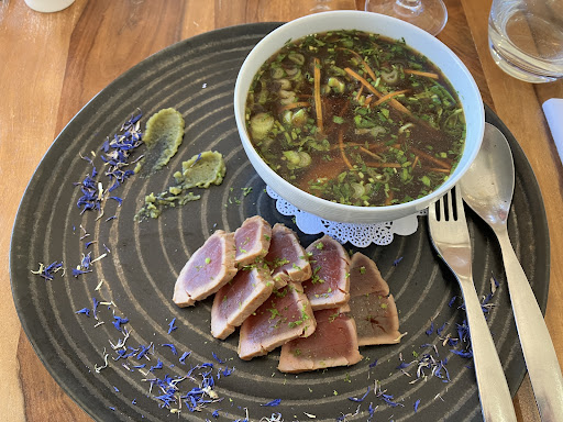 Read moreArrivés à vélo et donc en tenue de cycliste, nous demandons une table..... La gérante nous inspecte de la tête aux pieds, on comprend alors que notre tenue n'est pas adéquate à son "lieu", nous avons quand même le choix entre 2 tables, parfait. 5 min après un autre couple arrive et a le choix entre 5/6 tables, bizarre..... On commande, on mange et une fois fini notre plat, on voit passer tous les serveurs en scrutant nos assiettes vides, une fois, deux fois, trois fois, 4 fois ..... sans qu'aucune personne ne nous débarrasse nos assiettes. Nous décidons donc de partir. A l'accueil, la gérante nous demande si nous avions passé un bon moment, on lui répond que non en expliquant notre départ avant le dessert. Elle nous répond gentiment que nous avons déjà de la chance d'avoir eu une table !!!!! On rêve !