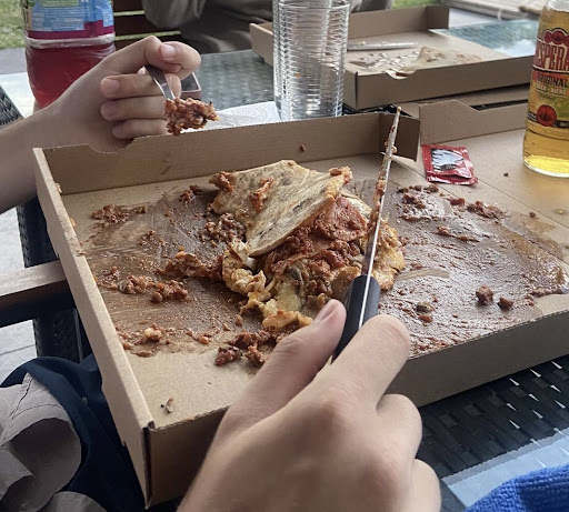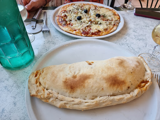 If you want to eat traditional Italian Pizza you are in the wrong place! We ordered 9 Pizzas for our group and the conclusion was the following: „Bolognese sauce and Emmentaler cheese don’t belong on a Pizza“ ; „We should have bought deep-frozen Pizza from the supermarket instead.“ Amongst others, I ordered a Calzone which the woman on the phone struggled to even understand. I got a regular pizza (which I flipped by myself to bring it closer to an authentic Calzone) with bolognese sauce, emmentaler cheese and the dough wasn‘t fluffy, nor crispy.
