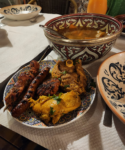Read moreService was poor - waiter forgot our wine and two starters. My vegetable tagine was just a thin soup of mainly potatoes, carrots and courgette, nicely spiced though. We had to ask for more couscous as they only gave us a small bowl full to share between eight, and that took a while to come. The mixed pastry option of the deserts is...