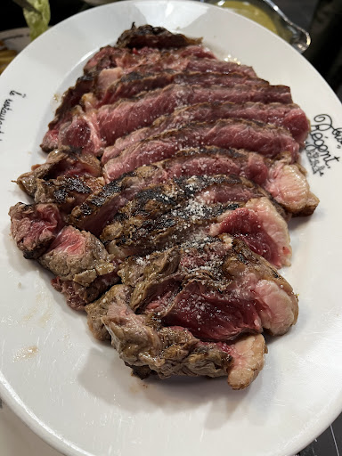 Nous venions régulièrement prendre l’entrecôte pour 2 personnes (55€ quand même) Notre dernier passage fut juste une gigantesque mascarade…. L’entrecôte est arrivé bien trop cuite, commandé saignante, arrivé limite bien cuite et bien trop nerveuse et à mon avis loin des 800g. Pour le côté nerveux nous savons très bien que c’est les morceau qui est comme ça et que ce n’est pas la faute du personnel. Nous avons mangé seulement 2 bout de chaque extrémité, mais c’était immangeable nous avons donc renvoyé l’entrecôte. Il était 13h30 on a osez nous dire [vue l’heure, je ne sais pas si le cuisiner va vous la refaire sinon ce sera des pièces de bœuf] Hors je suis venu pour une entrecôte, pas pour 2 petits morceaux sans intérêt. Il s’avère qu’une entrecôte est revenu enfin, le mot entrecôte est peut-être un peu fort. On aurais dit un vieux steak grillé avec des morceaux de viande aussi épais que le doigt d’un bébé et encore trop cuite. Nous pensions d’ailleurs que le morceau serai au poids, mais non ! Car apparemment nous avions déjà mangé la moitié de l’autre donc nous avons eu seulement une autre moitié. Sauf que non…nous avions comme cité précédemment, à peine touché à l’entrecôte. Après avoir interpellé le responsable qui a plusieurs reprises nous as dit que ce n’était pas sa faute (alors que si, un responsable doit avoir un œil sur tout ce qui ce passe) et qu’il a juré qu’une nouvelle entrecôte avait était réouverte, (ce qui est encore plus grave vue la tête du morceau) et que en plus c’est nous qui n’aimions pas la viande tout simplement, on nous as proposé du coup de cuire l’autre moitié. Nous avons refusé car pour proposer de la viande comme ça , je passe mon chemin et nous étions déjà là depuis un moment. Nous avons eu les cafés offert en petit geste, dommage de nous les avoirs donné alors que nous n’avions même pas fini nos frites. Des frites au café peut-être une nouvelle recette ? Très très très déçu d’avoir réglé 55€ pour avoir peut-être manger 400g d’entrecôte. C’était la dernière fois pour nous....