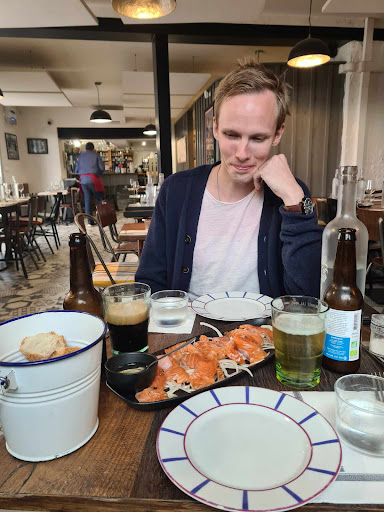 we went for the cured salmon with fennel salad as a starter. Braised beef cheeks for main course a Tarte Tatin and chocolate fondant for dessert.