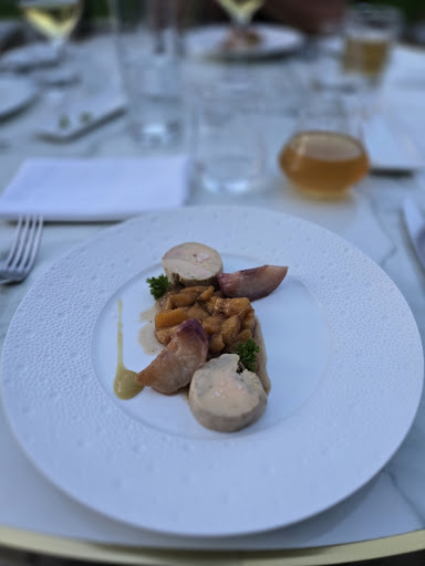 Read moreGrand disappointment for this Michelin guide restaurant. Seemed like the night we were there they only had two staff, including a new person who really didn't know what he was doing. Service was hit or miss, slow, and numerous mistakes. Food was disappointing and the least impressive of any Michelin restaurant we ate at in France. Setting was very nice until the flies showed up. I've never been swarmed by so many flies at a meal in my life. It really distracted from the meal and is something they need to figure out. Service was so slow we didn't even wait until the post dessert as it took so long. Pork belly was expensive and underwhelming. The main guy seemed to care but couldn't keep up and the younger new guy...