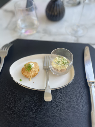 Terrible. This was in the michelin guide and the worse meal we have had both from using the guide and from not. Don’t understand why michelin would even consider this restaurant. Other tables are all complaining about different things but the worst is the actual food and the flies. The food is strange. Ruined foie gras because the chef decided to smoke it. Overcooked st Pierre fish. It’s hard to ruin a relatively versatile fish but if you want to know how come here. The meat course we were told was pigeon as part of the tasting menu. It was in fact lamb. It was warmed up with a horrid wine sauce reduction that as the photo indicates was left for the flies. I can’t wait for dessert but this place is to be avoided...