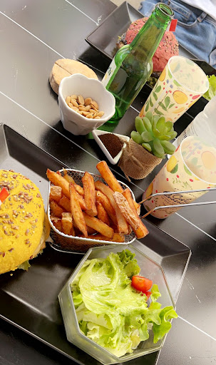The Burgers: Perfection on a Bun The menu is a dream for burger enthusiasts, offering everything from classic cheeseburgers to gourmet masterpieces. The meat is juicy, generously sized, and cooked to perfection—whether you like yours medium-rare or well-done. The buns are fresh, slightly toasted and colorfull! Every element works in harmony for an unforgettable taste. No burger is complete without the perfect side: The home made, crispy, golden chips are addictive. The 4 of us arrived unannounced and a bit late for lunch but we felt very welcomed, the patron was extremely friendly, attentive, and genuinely passionate about the food, making the experience even better. The choice of flavoured local limonades goes from classic lemon to raspberry, mango or rhubarb and more.