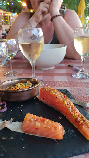 Read moreWent here because of the google reviews and because it was within walking distanxe of our campsite. It's a pretty location but the rating for this place is too high in my opinion. The chef had cut himself so there was no grilled meat available this evening, the waiters were literally running everywhere and kept forgetting about our table. Once we were able to order, our food was on the table within 2minutes and it was luke warm. We ordered the salmon and the pork, both were nothing special and too expensive.