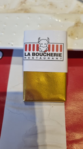 Read moreNous avons fait une halte à La Boucherie pendant nos vacances, et malheureusement, l'expérience s’est révélée décevante. Quatre plats étaient indisponibles à la carte, apparemment en raison de problèmes de livraison. En nous rabattant sur un steak haché frites et un maquignon rustique, la surprise n’a pas tardé : le steak haché, minuscule, ressemblait davantage à un plat enfant qu'à une portion adulte. Quant au maquignon, il est arrivé avec un morceau de fromage froid posé dessus, sans la moindre salade. Pour couronner le tout, même les yaourts destinés aux menus enfants n’étaient pas disponibles. Heureusement, la serveuse, souriante et aimable, a apporté une touche positive à ce repas...