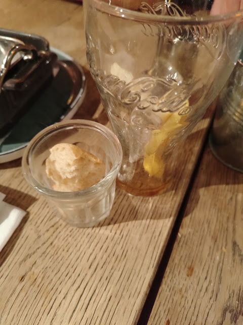 Nous sommes venus y manger hier soir, tôt (18h30 - 45) histoire d'avoir un service rapide et aussi peu de bruit, quand nous sommes arrivés il y avait peu de monde avec moins de 10 tables occupées. Une fois en place, nous avions dû attendre 30 minutes car les serveurs étaient en pleine discussion en groupe devant le bar, les clients n'existaient pas, pas de proposition de boisson (un comble pour une brasserie) .. on a dû quand même lever le bras pour en appeler un. La pâte de la flammekueche que nous avions pris en guide d'apéro à partager n'était pas cuite au centre. Ayant pris une assiette gourmande avec "os à moelle et son toast" , le toast étant même sur la photo histoire de montrer aussi qu'il y était, je ne l'avais malheureusement pas eu dans mon assiette. Nous le demandons donc, ce toast promis dans le menu, à un serveur qui était toujours autant compliqué a interpeller , qui s'est pointé un bon 5 minutes avec dans un micro verre un petit bout de pain de la veille rassis.. voyez sur la photo ! Il me semble que tout le monde sait ce qu'est un "toast" , sans parler de la micro quantité de pain qu'il m'a ramené, un pain rassis n'a jamais été un toast. N'aviez vous pas de grille pain ? Vouliez vous me prendre pour une (non , restons poli tout de même.) ? Soit , même si cela m'a fait rire (jaune) pour cette bonne "blague" , le serveur qui s'est empressé de dire le prix au moment du passage en caisse sans nous demander une seule fois si ça s'était bien passé, ça confirme que certains doivent changer visiblement de métier et pas montrer que les clients sont de trop. Conseil : Achetez un grille pain , et apprenez vivement ce qu'est un toast ! Indice : la photo est sur votre propre carte ! J'ai oublié de préciser ... Le Welsh en purée c'était pas non plus top , apparemment vous le saviez déjà , mais servir ce que vous saviez ne pas être bon.. encore une fois :...