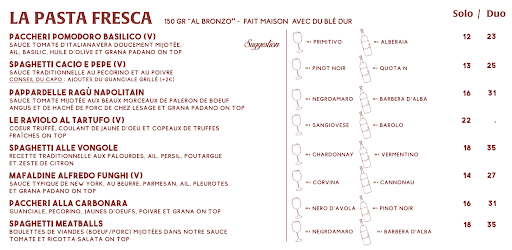 À première vue, belle ambiance, cadre sympa, pas trop bruyant pour communiquer facilement. Début de service agréable, peut-être un peu trop rapide à notre goût. Entrées succulentes. Rien à dire. Arrivent enfin les plats; que des demandes de pâtes pour la table. Nous nous attendions vraiment à replonger en Italie, mais quelle déception. Plats très tièdes, servis dans des assiettes très abîmées, pas plus goûtues que ça, alors qu’on s’attendait à faire vraiment mieux qu’à la maison. Résultat: 3 personnes sur 4 qui ne se régalent pas du tout.