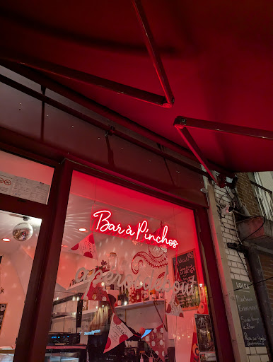 Read moreMagique, par hasard en sortant d’un spectacle au Spotlight nous nous sommes arrêtés en terrasse à cette adresse et nous sommes trop contents, cuisine de Pinchos et tapas trop bons , hyper frais fait maison une tuerie, je vous recommande le saumon entre autre mais surtout incroyable des supers vins dont un Croze très bon pour un prix très raisonnable, bref on a adoré, vraiment si vous cherchez un petit endroit sans fioriture, des produits frais et trop bons, des vins sympas accessibles avec une ambiance cosy plus c’est l’adresse mais attention c’est petit les places se méritent, vraiment j’ai adoré, on était avec ma fille de 18 ans et...