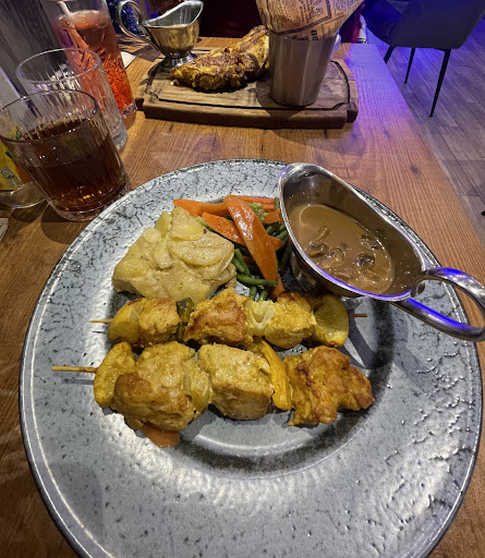 Après plusieurs minutes, nos boissons ont finalement été servies avec bien sûr une erreur de la part du serveur. Mais bon à la rigueur si ce n'était que ça... Les brochettes de poulet dégageaient une odeur et un goût affreux, comme si elles étaient restées trop longtemps dans un coin de la cuisine. Le second demi-poulet désossé était fade, sans saveur, c'est à se demander si j'avais le Covid pour ne pas le sentir. Même les frites étaient plus appétissantes...