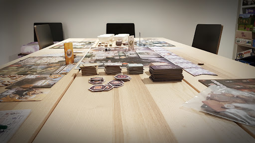 Pour notre première fois dans un bar à jeux, on a été un peu déçu. En effet, en rentrant on précise qu'on ne sait pas vraiment comment ça marche mais on nous a fourni aucune explication. On nous a installé à une table, on nous a dit qu'il y a qu'une seul règle ici....et bah on attend toujours après. Il a juste enchaîné sur une question par rapport aux jeux auxquels on avait déjà joué et il nous ramené un jeu "sponsorisé" qu'ils avaient eu gratuitement. Il n'était pas nécessairement mauvais mais il n'avait strictement rien à voir avec ce qu'on lui avait dit mdr Ensuite il a pris notre commande de conso'. Tout est aussi cher que dans n'importe quel "bar à", ce qui n'aurait pas été surprenant si on devait pas payer pour jouer(3€ par personne l'accès aux jeux). Je trouve donc ça un peu excessif. Puis enfin, il nous a expliqué une première chose, les règles du jeu. Enfin il nous les a lues. Après notre partie, on a voulu changer mais on ne savait comment ? Puisqu'il nous avait ramené le premier jeu, c'était pas clair si on pouvait se servir comme on voulait. Parce-que vraiment, il nous a rien expliqué. On a voulu lui demander mais il nous a pas laissé parler pour nous faire patienter mais il n'est jamais revenu vers nous... Après on peut comprendre: il avait du monde, mais bon, ça n'aide pas qu'un des deux ait passé 1h30 à expliquer à ses amis un jeu...il y avait qu'une personne finalement.