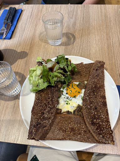 Read moreCreperie with a modern feel. We're made to feel welcome, were offered an English translation of the menu but we prefer it in French (it makes the food taste better!) We think the menu has changed since we were last in Lille as I found it harder to find something without meat or nuts (I have an intolerance to all tree nuts) However they made me a tagine galette but left off the almonds and it was delicious. If there was a vegetable option it would have been perfect! My husband had an Odette and said it was excellent. Also we chose the extra dry cider and it was fabulous. We brought our little toy bear who goes on all our adventures and he even got his own little pot of honey. Thanks to the waiting staff for...