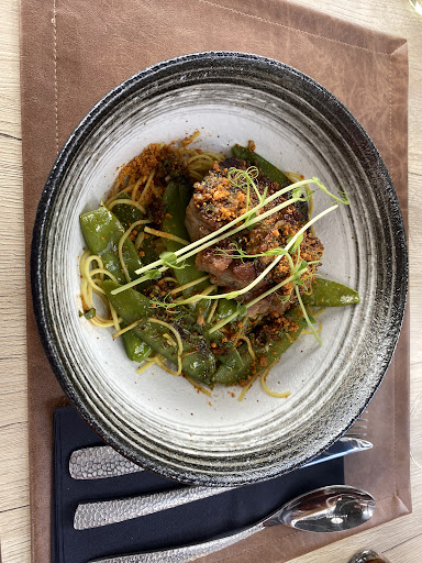 Read moreExcellent restaurant Très bon accueil : malgré que je sois arrivée avant l heure d ouverture, exceptionnellement, ils ont accepté de m accueillir Bien sur, j ai pris un plat "simple" rapide à préparer Ce qui n empêche pas un très belle présentation ... Les croquettes de crevettes 😋 avec des frites mmhhhh un régal de croustillant extérieur et moelleux intérieur . Les croquettes n étaient pas en reste on sent qu'il y a des crevettes Et la petite salade ! Miam avec de jeunes pousses de petit pois Donc je me suis régalée Le dessert n est pas en reste : croustillant de fruits des bois Le tout dans un joli cadre de bâtiment industriel bien décoré et très aéré avec un service soigné et aux petits soins de leurs clients. Je recommande...