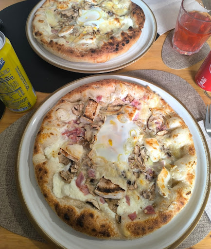 Ok alors cette pizzeria est juste gĂ©niale ! La salle est petite, il doit y avoir entre 12 et 16 places assises, ce qui fait qu'il n'y pas trop de bruit, on peut manger et discuter dans le calme, et ça c'est pas mal La pizzaiola est super sympa, elle s'occupe de tout toute seule, de la fabrication de la pĂąte Ă l'encaissement, en passant par le service, l'assemblage des pizzas, la prĂ©paration des desserts maisons, et ça donne un service hyper agrĂ©able, en plus d'ĂȘtre rapide. Et enfin, les pizzas. Parce que oui, il faut en parler des pizzas... đ€ Waow DĂ©jĂ il y a un choix de fou malade, des bases crĂšmes ou sauce tomate, il y a vraiment pas mal de choix, il y en a pour tous les goĂ»ts ! Et chaque pizza est disponible en 3 tailles, histoire de s'adapter Ă chaque estomac, sans oublier la possibilitĂ© d'y ajouter une petite touche de piquant đ Et la vous allez me demander : "Super tout ça, mais qu'est-ce que vous avez commandĂ© ??" Et bien voici notre commande finale, de la meilleure pizza (selon mes goĂ»ts) Ă celle qui m'a le moins fait vibrer : La Villeneuvoise (10/10), la Raclette (10/10) et la Buratta (10/10). He oui, trois 10/10, c'est un score...