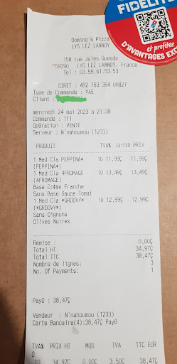 Commande via Uber eat avec une annonce de livraison entre 5 et 25 min! Super je prend mon temps pour passer la commande. Une fois le paiement fait Domino's lys lez Lannoy modifié le temps de livraison et on passe de 5min à 1h30!! On prend notre mal en patience et le livreur arrive 1h30 plus tard! Sur une commande à 3 articles dont 2 pizzas (1 acheté une offerte) il manque une pizza... Comment c'est possible? De se tromper pour une commande de 3 articles ? On va dire que l'erreur est humaine mais quand il s'agit d'une pizza dont on annonce 1 acheté une offerte j'ai du mal à comprendre.