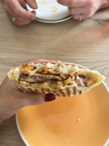 Après avoir répéter trois fois la commande à quelqu’un qui comprend la moitié du français j’y suis retourné en ramenant le cheese avec cette photo en lui expliquant que je commande toujours la même chose que son employé s’était tromper et que personne ne le mangerai (le cheese) et qu’il manquait donc une frite le gérant n’a rien voulu savoir et me soutiens qu’il a mis lui même la frite alors que la seule frite présente était celle du menu enfant. Je suis donc une menteuse et la photo est fausse il l’a mis lui même paraît il.