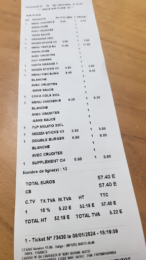Nous avions commandé 3 menus et 2 menus enfants. Déjà, ils se trompent sur une des boissons : on a laissé passer. Ils oublient de nous mettre le pain : on a encore laissé passer, on est repartis le demander. Ensuite, on se rend compte qu’il n’y avait pas les jeux dans les menus enfants, ni la sauce mayonnaise qu’on avait demandée. On s’est dit que ce n’était pas grave, on a laissé passer encore une fois et on est pas parti demander car c’était inutile.