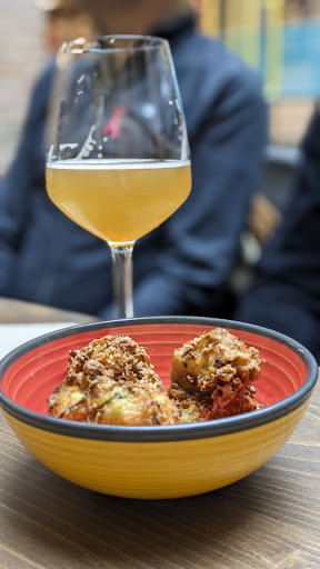 Read more2e visite en quelques mois. Excellente adresse récente en matière de bières artisanales de microbrasseries. Cet endroit est ce que les anglo-saxons appelent un brewpub, c'est à dire qu'il est tenu par des passionnés du houblon, et qui servent les bières brassées sur place par leurs soins. Le cadre est très sympa, avec vue sur les cuves de fermentation. La carte est agrémentée de quelques autres choix pointus à la pression (par ex: deux Imperial Stout lors de mon 2e passage). Je ne connaissais pas l'equipe du jour, mais le barman a répondu à mes questions, et m'a immédiatement proposer de goûter une de leurs bières maison (style NEIPA) avant de valider ma commande. Puis il m'a servi une bière en 125ml (galopin) à ma demande. La petite carte salée est formidable par rapport à ce que l'on trouve en bar classique: labneh, saucisson, et petite portion de frites avec sauce maison pour 3eur. Prix très raisonnables. A noter pour les amateurs de musique: il y avait exceptionnellement une soirée DJ et musique live ce soir-là (samedi). Bonne ambiance,...