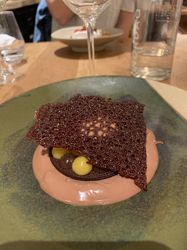 The place is tastefully decorated, mixing wood, concrete and leather, very harmonious, creating a calm ambiance that doesn’t steal the thunder to the cuisine which is as good as it is creative! We ordered the tasting menu, which balanced perfectly fresh products, from earth and sea, superbly presented! Special motion for the salmon tartar amuse-bouche and the herb sorbet in pre-dessert! The wine list is also very well put together, the rosé Champagne and the Meursault were particularly exquisite! The impeccable service and the open kitchen complete the ensemble! Congratulations Anne-Sophie and Alexandre for this beautiful restaurant! An address to discover and rediscover through the evolving menus...