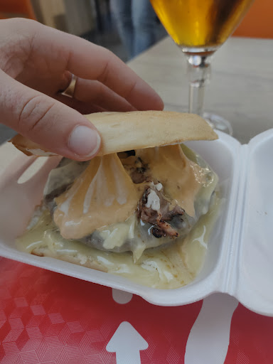 Read moreLieu sympathique et grand, propre et refait a neuf. Terrasse extérieur ce qui est un plus. Prix des plats abordables. Par contre, un grand désaccord sur le prix des boissons et des sauces ! Normalement, quand on prend un Américain, la sauce est comprise dans le pain, et bien la non ! 60cts la sauce dans le pain, du grand n'importe quoi... + 60cts la sauce a coté dans un petit pot, une portion pour un enfant. 2e la canette de soda ! très excessif ! Donc pour calcul : Américain Mexi 6.40e + sauce dans le pain 60cts + sauce a coté 60cts + une boisson 2e = 9.60. Ca fait cher pour une friterie je trouve !