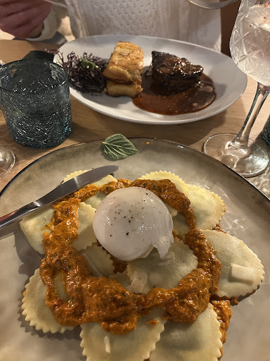 L'entrée (poireaux pour moi, huitres G pour monsieur) est exquise Le plat (gnocchis aux legumes pour moi, la peche pour Mr) un délice subtile. Le dessert ( la noirtelette et gateau choco/passion que nous avons partagé) à tomber à la renverse.