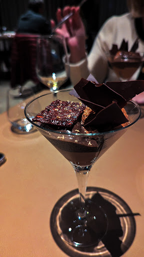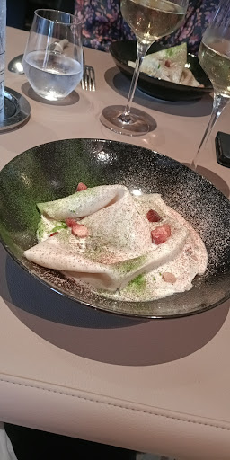 Aaah la la , que dire que dire ? Je m'y suis rendu Ă deux reprises et en sortant toujours cette mĂȘme impression de lĂ©gĂšre faussetĂ© . Excellente cuisine illustrant un grand travail de recherche s'exprimant merveilleusement dans les yeux decouvrant la mise en scĂšne au seing de l'assiette puis le raffinement de l'Alliance des textures en bouche , un travail d'orfĂšvre qui s'appuie sur des produits de grandes qualitĂ©s , fermez les yeux et partez en voyages .... En ce qui me concerne c'est lorsque vous les ouvrez ( les yeux) que ça coince, une dĂ©co dans les inĂ©vitables tons taupes qui se veulent chics mais peinent Ă masquer de piĂštres radiateurs indignes d'un lieu d'excellence ainsi qu'une froide atmosphĂšre accentuĂ©e par une clientĂšle " guindĂ©e" s'Ă©tant crue obligĂ©e de se mettre sur son 31 pour dĂźner ici, le personnel de salle en tenue hĂŽteliĂšre et parfois trop condescendant n'arrangeant rien Ă l'affaire.