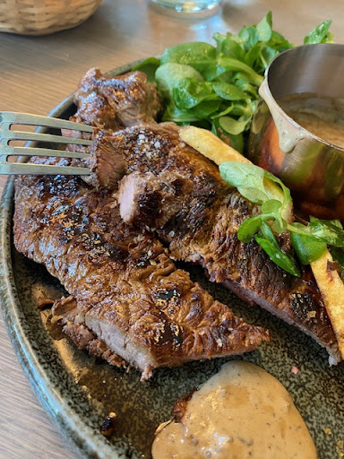 Shockingly bad food. To start some kind of tinned tuna and peach concoction that I would have not fed my cat. The real issue was the steak. Requested it cooked 'a point' - (ie medium rare) - it arrived almost grey, cooked so hard there was barely a hint of pink to it. I would not normally complain, but this was so over cooked it was almost funny. Having pointed this out to waiter, he went to the kitchen - and then returned a minute later saying there was nothing that could be done, the chef considered it to be 'a point'. I spent the next 20 minutes chewing on leather. In short the chef does not know how to cook - and the customer service was...