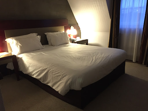 Points positifs : parking privé très pratique, plus deux larges places handicapés juste devant la réception. Personnel aimable (sauf un manager de nuit assez sec et raccrochant sans formule de politesse après qu’on lui demande comment régler la ventilation dans la chambre étouffante et qu’il vous ait dit qu’elle ne fonctionne pas en automne). Très bel atrium, superbes murs. Lits bien larges. Restaurant correct mais au serveur très très pressé.