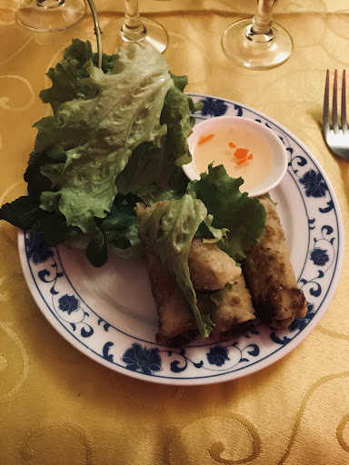Chicken Spring Rolls - you get 4 spring rolls on a plate with a dip and some lettuce. The spring rolls did not taste good, the chicken meat was salty and you can tell they were frozen then deep fried.