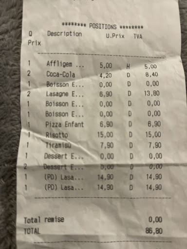 Read moreNous fiant aux avis positifs, nous avons testé ce restaurant. Mais quelle déception ! Il y avait de la terre dans la salade servie avec les lasagnes ricotta épinard, cela a été reconnu par la cuisine et nous avons juste eu le droit à un « désolé ça arrive ». Aucune geste commercial n’a été fait c’est proprement scandaleux ! Quand nous avons réglé l’addition, la serveuse a échangé deux desserts en nous faisant croire à un geste commercial (« j’ai mis le dessert le plus cher dans le menu ») alors que les deux sont au même prix. L’arnaque la plus totale ! Donc voilà un restaurant qui sert un plat impropre et qui ne l’offre même pas. Le risotto de mon mari était sec et la glace à la vanille des profiteroles avait des cristaux. Seul point positif ce sont les menus des enfants. Nous n’y remettrons plus...
