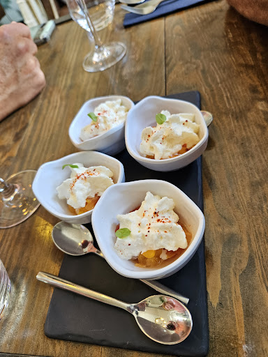 Read moreNous y sommes allés un midi ma femme et moi. Nous avons pris la formule du marché en 4 temps (entrée plat fromage dessert) et nous nous sommes régalés. Les produits sont travaillés avec des associations qui émoustillent le palais. On ressent l'intelligence du cuisinier derrière chaque plat qui nous régale. La sauce accompagnant le plat principal était juste magique. Le dessert était à la hauteur du reste, ce qui est rare d'avoir un sans fautes de l'entrée au dessert... Bravo et merci pour le bon moment passé. Seul bémol, le pain accompagnant le tout qui n'est pas à la hauteur de ce que nous...