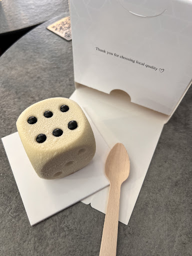 Le choix en vitrine était très limité. On comprend qu’en fin de journée il y ait moins de stock, mais pour l’heure du goûter, on aurait espéré un peu plus de variété. Mon ami a pris un New York Roll cacahuète qu’il a trouvé bon mais un peu sec, et de mon côté, j’ai goûté un “dé” au chocolat. Même constat : sec, assez dur à l’intérieur, pas vraiment gourmand. “Bon” serait un mot un peu fort pour ce qu’on a ressenti.