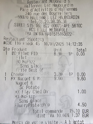 Read moreUn seul mot a retenir SCANDALEUX ! Ce jour là je vais au macdo pour faire plaisir a mes enfants et manger tranquillement en famille et je finis gêné et scandalisé par la manageuse qui se nomme "EMMA" qui hurle sur ses employés qui sont clairement débordé car il manque clairement de l'effectif. Puis pendant mon repas que j'essaie tant bien que mal a mangé tranquillement, j'entends toujours cette fameuse Emma hurlait car un employé avait rajouté un truc dans le burger de son collègue ce qui n'est pas très grave en soit mais encore une fois ce sont vos affaires ! On ne lave pas son linge sale en public mademoiselle ! Si vous avez un complexe d'infériorité profond il faut le régler et laisser sa place de manager a d'autre. Votre management est catastrophique, vous manager n'importe comment on se demande qui vous forme. "Votre macdo recrute" mais donnez pas du tout envie de rejoindre vos rang. L'éducation est a refaire a vos manager et (surtout a cette fameuse Emma c'est pas la première fois) avant de les mettre a ces postes Le service a tout de même été rapide et de qualité mais je remettrai plus un pieds, votre équipe de gestion me choque. Et quand je vois vos employés se donner au maximum même quand ils ont les larmes aux yeux et qu'ils nous explique que c'est toujours comme ça et que même la nouvelle directrice ne dis pas bonjour mais désolé je préfère bien mieux aller a SECLIN ou l'atmosphère est bien plus propice pour passer un moment en...