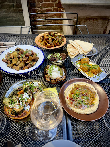TrĂšs déçue. En voyant les commentaires et la frĂ©quentation du lieu, nous avions hĂąte de goĂ»ter la cuisine de ce lieu dĂ©crite comme "Ă©laborĂ©e et copieuse" : mais en vĂ©ritĂ©, pas du tout. La dĂ©coration du lieu est minimaliste, voire inexistante. Pour le plat, nous avons pris un mezze du soir : 1 petite portion de houmous et de yaourt Ă l'ail, 2 falafels, 2 beignets de betterave, une toute petite portion de couscous, une petite portion de lĂ©gumes et une assiette de frites...le tout Ă partager. Tout est bon mais rien n'est transcendant, on reste sur notre faim avec des plats peu travaillĂ©s (des frites, du houmous,....) et trop peu copieux. On se retrouve finalement Ă payer le prix d'un plat (41⏠à deux) pour un apĂ©ritif dĂźnatoire franchement moyen en recherche et en goĂ»t. Le menu unique permet pourtant de baisser les prix tout en travaillant avec des produits de qualitĂ©. Le supplĂ©ment de 2⏠par personne pour la version "carne" est tout simplement honteuse : nous avons payĂ© 4⏠pour 6 petits bouts de poulets Ă deux dans le (trop) petit bol de couscous... RĂ©sultat on sort de ce lieu en ayant encore faim et en ayant l'impression de s'ĂȘtre fait avoir. Le service est correct, le personnel est poli. Nous n'y retournerons pas car sans grand intĂ©rĂȘt.