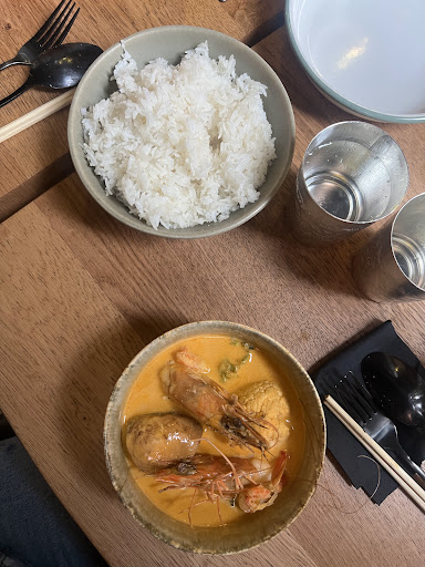 Read moreJe m'y suis rendu 2 fois accompagnĂ©, un soir et un midi. Globalement, globalement la cuisine est bonne, trĂšs bonne mĂȘme pour les curry et le boeuf, top qualitĂ© et cuisson. Carte des vins de qualitĂ©, service simple, sympathique. Cependant, pas certain que nous renouvelions l'expĂ©rience, ou bien juste pour des plats Ă emporter. Nous sommes sortis assez déçus d'un dĂ©jeuner : aucune prĂ©sentation dans les plats, notamment le laab de poulet ( Juste du hachis dans une assiette, sans lĂ©gumes), l'entrĂ©e ne donnait pas envie, et ce n'etait pas terrible... Les plats principaux sont prĂ©sentĂ©s ( trop) sommairement Ă©galement, mais ils sont trĂšs bons. DĂ©ception sur le dessert Ă la banane, qui Ă©tait bon, mais dans lequel il n'y avait rien : Un jus de coco sucrĂ© avec exactement 3 bouts de banane. Enfin, cerise sur le gĂąteau, nous avons eu la mauvaise surprise de payer 3 euros la petite tasse d'expresso servi sans rien Ă mĂȘme la table, c'est dĂ©tonnant : Le cafĂ© est le plus cher de Lille ! ( avec " Le Corfou") MĂȘme les tables bistronomiques qui proposent leur cafĂ© avec mignardises, ne pratiquent pas ce tarif lĂ .
