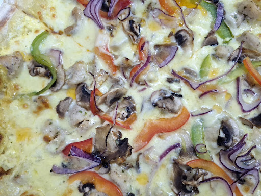 De l'origan et pas du basilic de l'oignon plein la bouche une pate blanche brulée par dessus, j'gnore ce que c'est mais il me semble qu'on appel ca de la mozza une pate a peine cuite, juste croquante en dessous a cause de l'huile qui degouline.