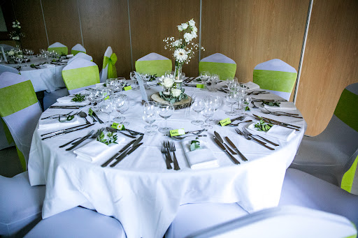 En revanche, le service lors du vin d'honneur et repas a été impeccable avec des personnes dynamiques et souriantes, et le repas trÚs bon avec de bons produits. Nous avions demandé qu'il y ait 3 petites pommes de terre dans l'assiette au lieu de 2, et cela a été respecté. Les 2 salles sont équipées d'un systÚme de ventilation double flux et non pas d'une climatisation