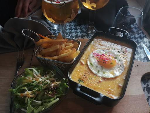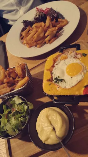 Read moreLieu plaisant, bien décoré, propre. Le repas était succulent. J'ai apprécié l'onglet à l'échalote, (cependant il n'y avait pas beaucoup de sauce, je n'ai pas bien senti la saveur de l'échalote). Les frites étaient bonnes. Mais je conseille d'ajouter un peu plus de frites, je n'ai pas mangé à satiété, j'ai donc demandé du pain et du beurre. Je conseille pour ceux et celles ayant un bon appétit d'ajouter une entrée. Le flanc n'avait rien d'extraordinaire, pour moi il doit être épais, cremeux, avec un petit goût vanille. Je mets 5 étoiles pour les efforts du personnel vu notre nombre 34 personnes environ, il est donc normal de ne pas être parfait. Je conseille ce restaurant sauf si vous êtes un grand groupe. Idéal pour 2 à 3 personnes. Je reviendrai mais pas...
