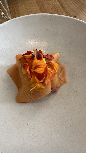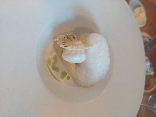 Après, si vous voulez de la constructivité, en voici : J'ai apprécié l'amuse bouche, la truite est un produit que j'aime. Après, on va avouer que l'assortiment truite / ricotta est assez classique. La première entrée était correcte. On a l'asperge sous plusieurs formes (la glace était originale). Par contre l'œuf disparaît complètement du plat (on ne le sent pas du tout), et il est servi sans cuillère (impossible de finir la soupe si on ne la réclame pas). Même chose pour la 2e entrée : des variations autour d'un légume la topinambour. Snackée, en chips, et en pickles de mémoire. Là encore, c'est correct. Le plat était décevant. Le porc était trop sec, la sauce au morille très classique. Bref, plus proche de la cuisine française tradi que de ce que j'attendais d'un gastronomique. RAS sur le plateau de fromage, ce n'est pas produit par votre établissement de toute façon. Le dessert était... une salade de fruits bien vendue. Rhubarbe pochée, fraises, vinaigrette fraise rhubarbe... Bon. Rien qui ne sorte de l'ordinaire.