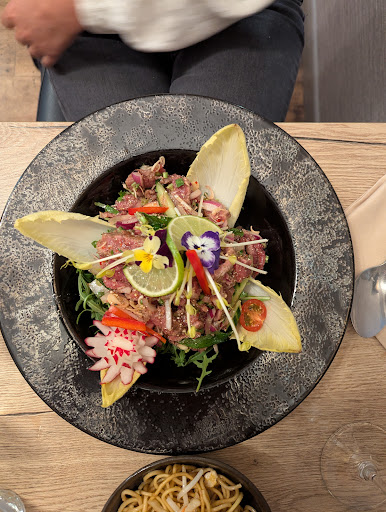 Read moreNous avions réservé un soir au restaurant pour 19h, mais à presque 20h nous n’étions toujours pas servis, alors que nous étions les premiers clients. Personne n’est venu nous voir ni nous donner d’explication. Lorsque nous avons demandé, il nous a été répondu qu’il y avait beaucoup de livraisons à préparer, ce que nous pouvons tout à fait comprendre. En revanche, il devrait y avoir un juste équilibre entre la gestion des commandes à emporter et l’attention portée aux clients présents dans la salle. Au moment de partir, aucun mot d’excuse ne nous a été adressé, et nous avons simplement entendu de la dame du bar, que « la cuisine devait être prévenue ». Malheureusement, cette expérience nous a vraiment déçus et c’est sûrement la dernière fois que nous viendrons. Dommage, car nous avions apprécié l’adresse auparavant, mais le côté humain semble s’être perdu depuis la reprise après...