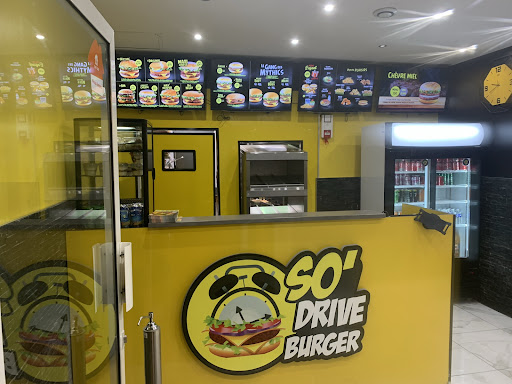 Je partage l'avis de Reno lymo plus bas, accueil nul digne du quartier, personne devant nous mais nous attendons plus de 30 minutes sans aucun mot d'excuse pour l'attente. Un burger mini pour un prix élevé, ah oui généreux pour les frites mais malheureusement froide alors que nous habitons à côté..... C'est la dernière fois que j'y met les pieds. Surtout que j'ai l'habitude de manger chez G la dalle mais ce soir du 13 il y avait du monde donc je me suis dirigé vers So drive. Nous étions 3 et tous les 3 déçus. Les prix sont exagérés pour vos burger qu'on mange en une bouchée, j'aimerai voir l'hygiène derrière. Enfin, les burgers sont là prêt mais le jeune homme s'en fou priorité à la livraison du coup on mange froid. Bye bye et pour ceux qui veulent vraiment manger bien rdv chez G LA DALLE et pour info je ne suis pas un concurrent ou un jaloux mais un client. Bonne continuation à vous.....