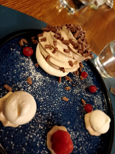 Le dessert, un sablé avec crème, citron, était présenté de manière assez grossière. Les saveurs n'étaient pas équilibrées, rendant le tout plutôt désordonné en bouche. C'est un dessert qui mériterait d'être repensé pour offrir une meilleure harmonie des goûts.