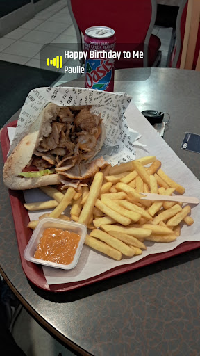 Read moreQuesto è un posto preservare: da una parte sedie un po’ macchiate, cartello con menu sbiadito, caldo all’interno ma poi: qualità e quantità per un kebab davvero ottimo a prezzi onesti. Mi ha sorpreso il fatto che taglino i pomodori al momento, cucinino la carne poca alla volta ed espongano la carne dietro un vetro: sintomo di igiene e buona qualità. Certo, non ci porterei mia moglie per una cena romantica, ma un vecchio caro amico per dimenticare i problemi e farmi grosse risate. Menu kebab di pollo, patatine, insalata, sprite,...