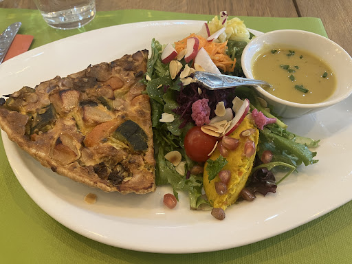 Le choix sur la carte propose (de mémoire) 4-5 tartes salées, un bowl quinoa + légumes avec falafel / poulet / boeuf, et 3-4 plats du jours (aujourd'hui il y avait cannelloni, blanquette de veau et... je ne sais plus). Bref, tout à fait de quoi trouver son bonheur.